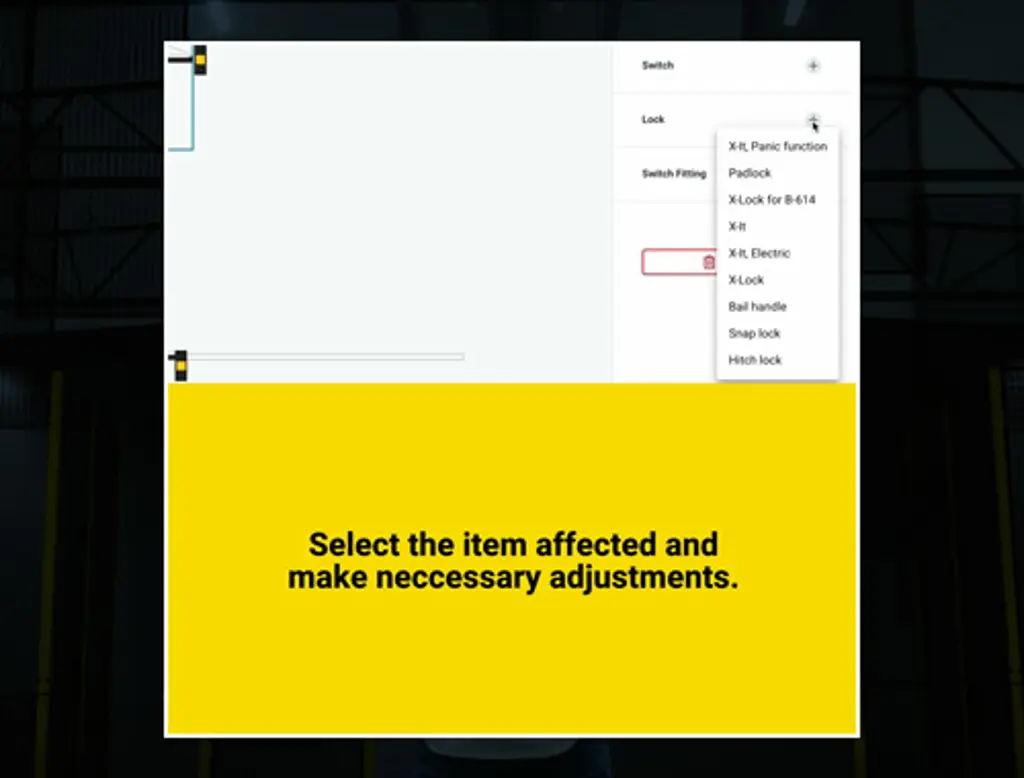 • Solutions at Your Fingertips: Simply click on the product in question. Axelent Safety Design guides you through the necessary steps to solve the issue, whether it's adding a lock to a door or attaching a post to a sliding door. This feature ensures that every component of your safety solution is complete and functional.